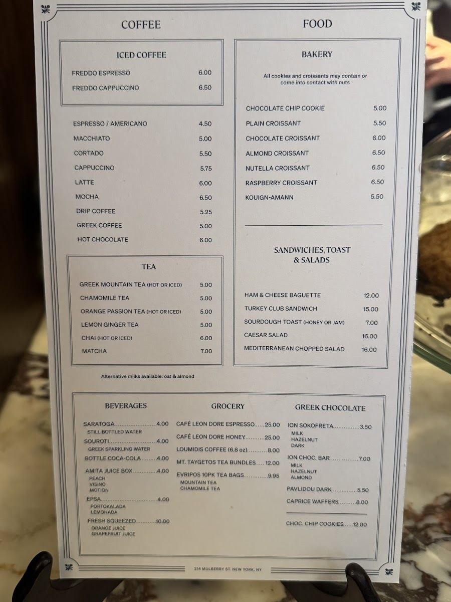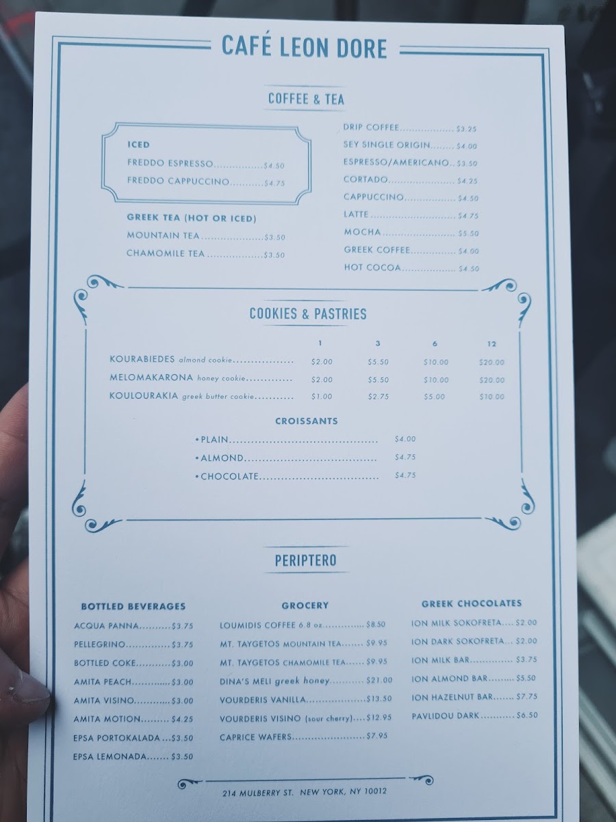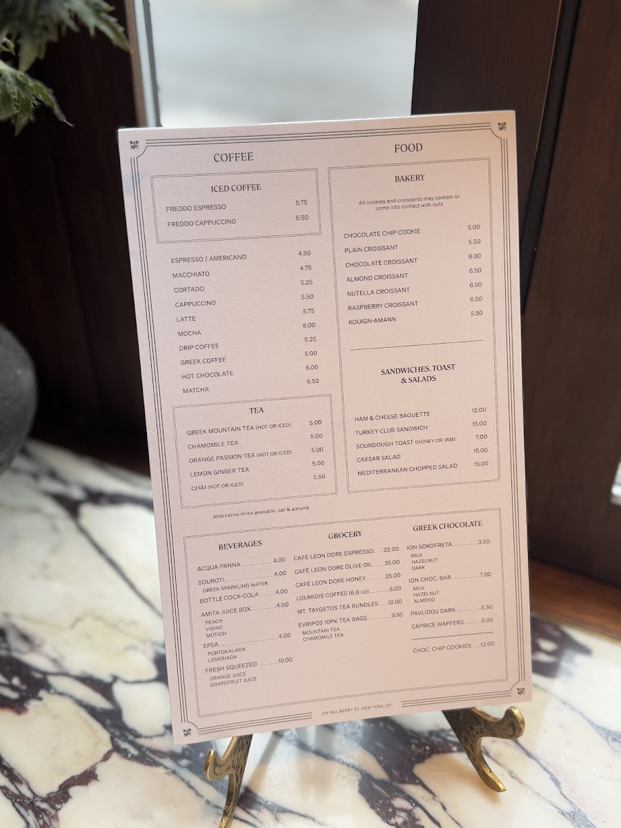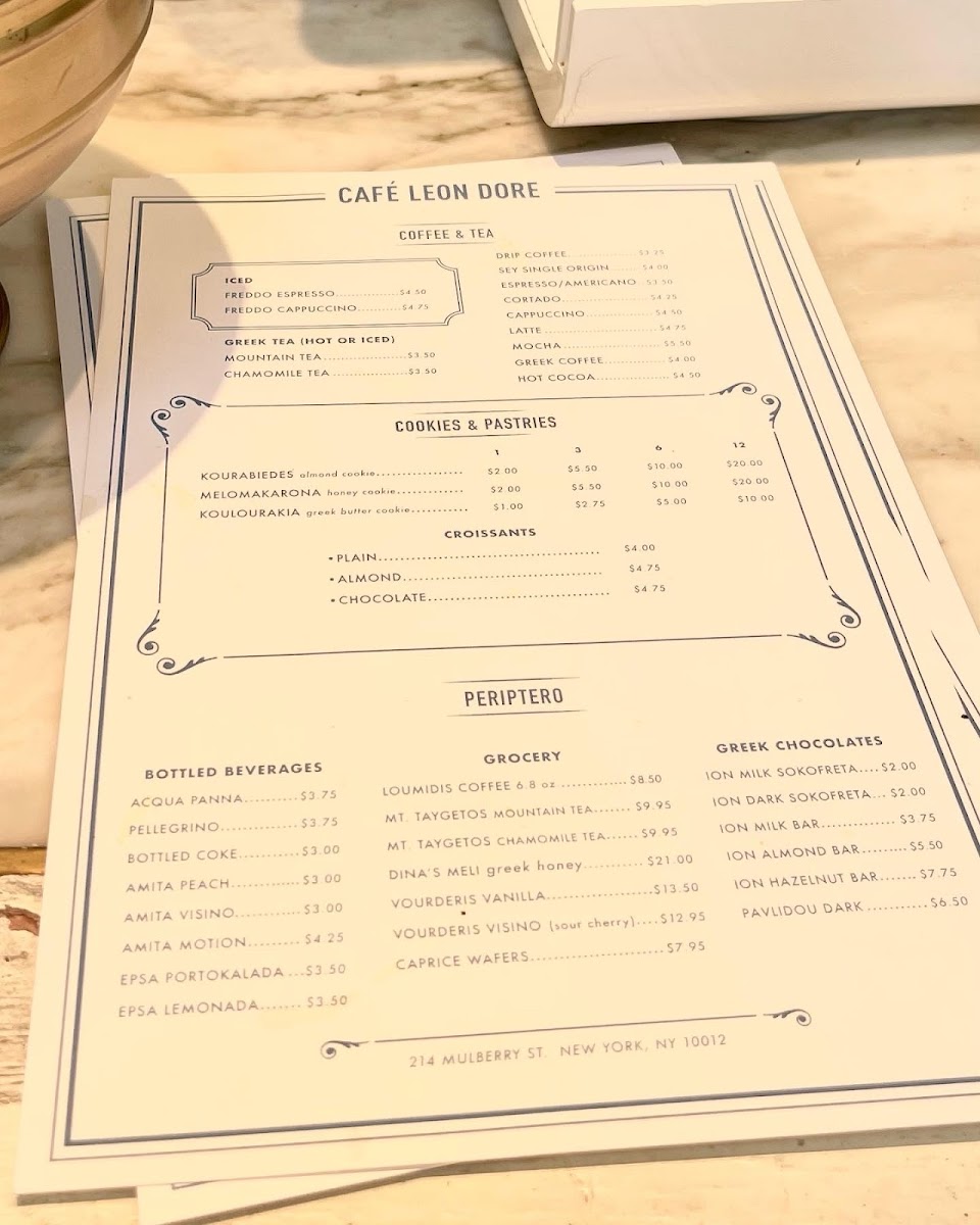 The menu at Café Leon Dore offers a thoughtfully simple selection that reflects the cozy, relaxed vibe of this small New York café. It features a range of comforting drinks and casual bites, perfect for a morning pick-me-up or a laid-back afternoon break. Whether you’re in the mood for a smooth cold freddo cappuccino or a warm café latte, the coffee options are crafted with care to provide a fresh, balanced experience.